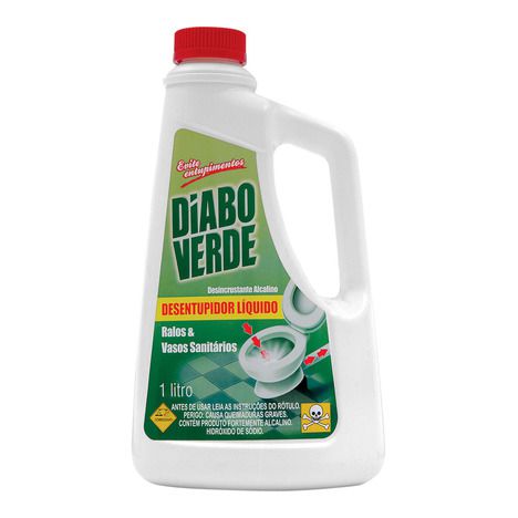 O Diabo Verde líquido é um desincrustante alcalino com alto poder desentupidor, eficaz para ralos e vasos sanitários, evitando a necessidade de contratar especialistas encanadores para casos de entupimento de baixa e média complexidade.